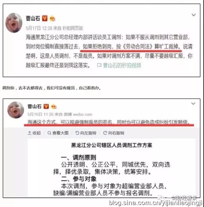 接着是海通证券变相裁员,微博大V曹山石顺带跟着发声: