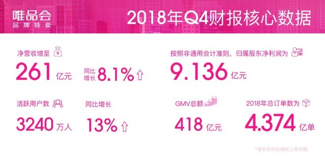 唯品会发布Q4财报:净营收261亿 同比增长8.1%