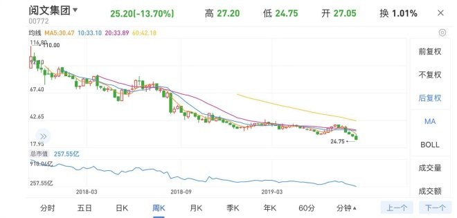 8月13日,阅文集团开盘报每股27.05港元,股价再创历史新低。