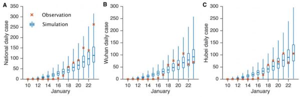 这一分析,是综合了春运前后的旅行大数据,以及全国375座城市的确诊病例数变化趋势,通过模型计算得出的。分析认为在武汉封城时,全国的实际感染人数可能已有近1.7万人,是当时报告病例数的20倍!