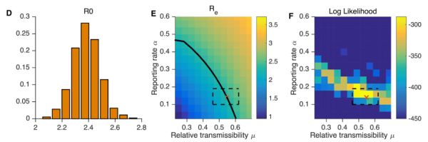搞清这一环,在控制疫情中是至关重要的,于是就有了哥伦比亚大学团队的这次分析。基于上面提到的人口迁移和病例变化趋势,研究团队模型预估的新冠肺炎基本传染数(R0)为2.38,潜伏期则在3.6天左右,和此前的各种分析相似。