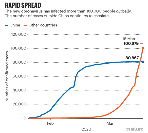 日前,Nature制作了关于这次新冠病毒疫情的五张图表,以一种非常直观的方式为我们呈现了病毒确诊病例的变化趋势、R0值对比、科研人员发布研究的速度、旅行限制对碳排放和空气质量的影响、以及和2003年SARS相比的大流行情况等。