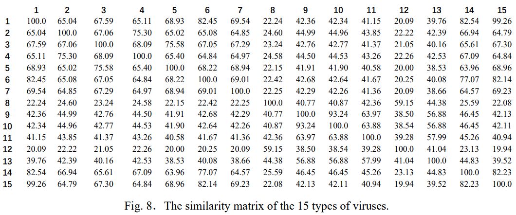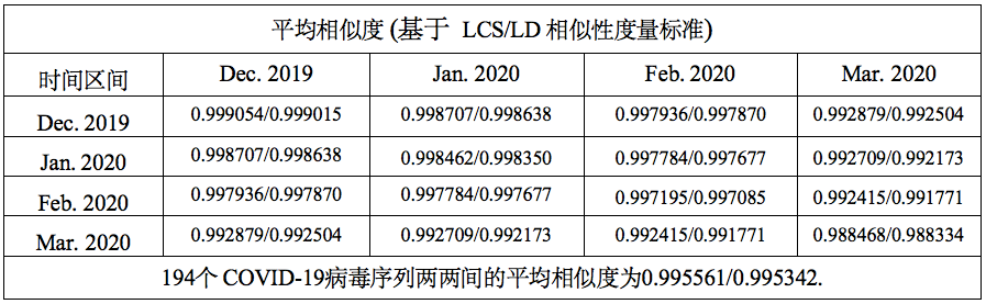 表1.不同月份的COVID-19病毒序列之间的平均相似度