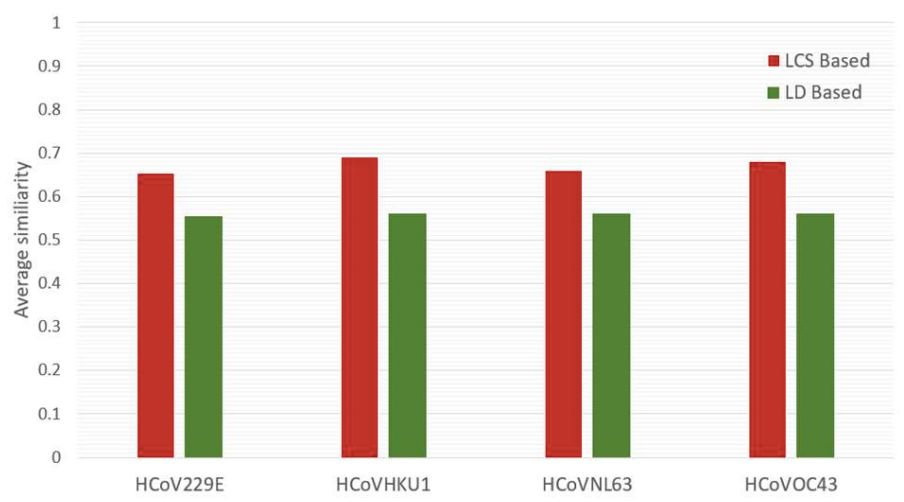 图2.四种流感冠状病毒与以人为宿主的COVID-19之间的平均相似度。