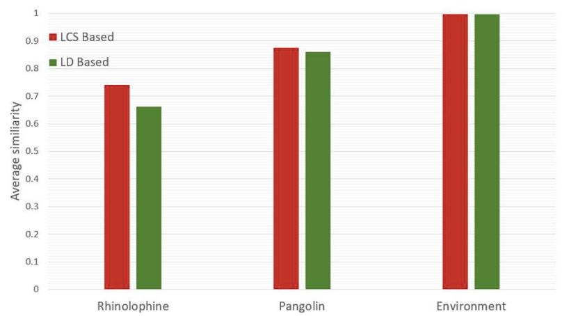 图4.不同宿主中COVID-19病毒序列之间的平均相似度。