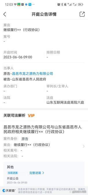 据天眼查信息显示,就在今年6月份龙之源热力已经发起过一次针对昌邑市政府的诉讼,主要是要求昌邑市政府继续履行相关行政协议。
