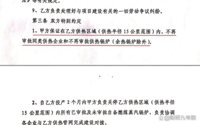而且昌邑滨海经济开发区作为甲方,在投资协议中约定“保证乙方供热区域(供热半径15公里范围)内,不再审批同类供热企业和不再审批供热锅炉(余热锅炉除外)”。