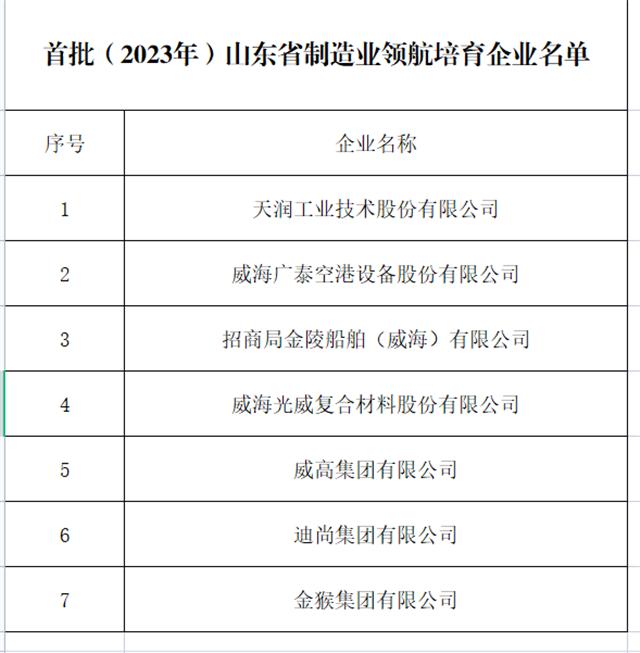 威海7家企业入选首批山东省制造业领航培育企业名单