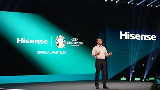 IFA 开幕式上,海信总裁于芝涛以流利的全英文演讲“首秀”,正式宣布成为2024年欧洲杯官方合作伙伴,这是自2016年之后,海信第三次成为欧洲杯的官方赞助商。