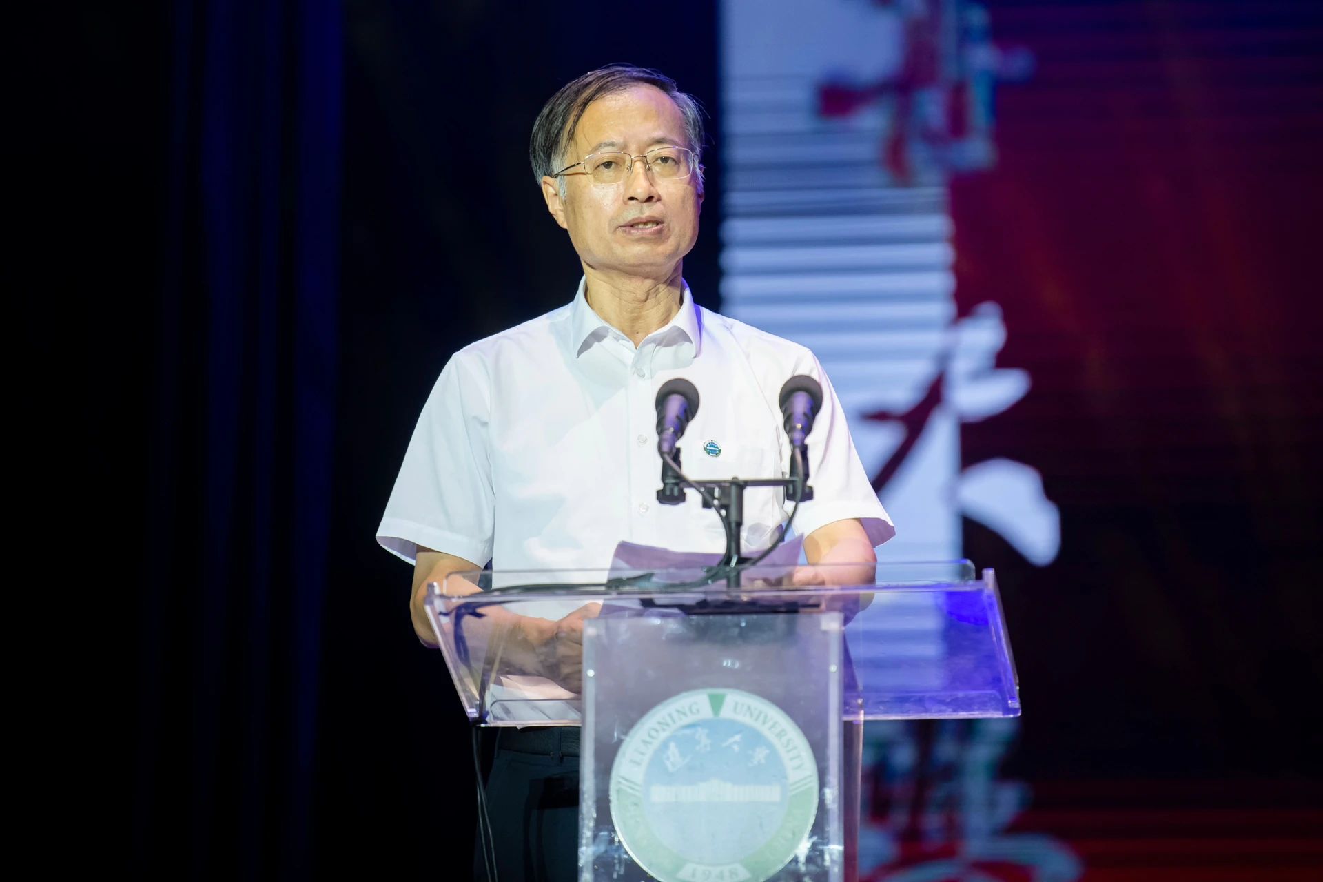 潘一山在“韶光雅韵 歌咏芳华”音诗画演出活动上致辞。他代表全校师生,向各位校友、来宾表示热烈的欢迎,向长期关心和支持辽宁大学建设发展的各界朋友,以及遍布海内外的辽大校友们致以亲切的问候和诚挚的感谢。