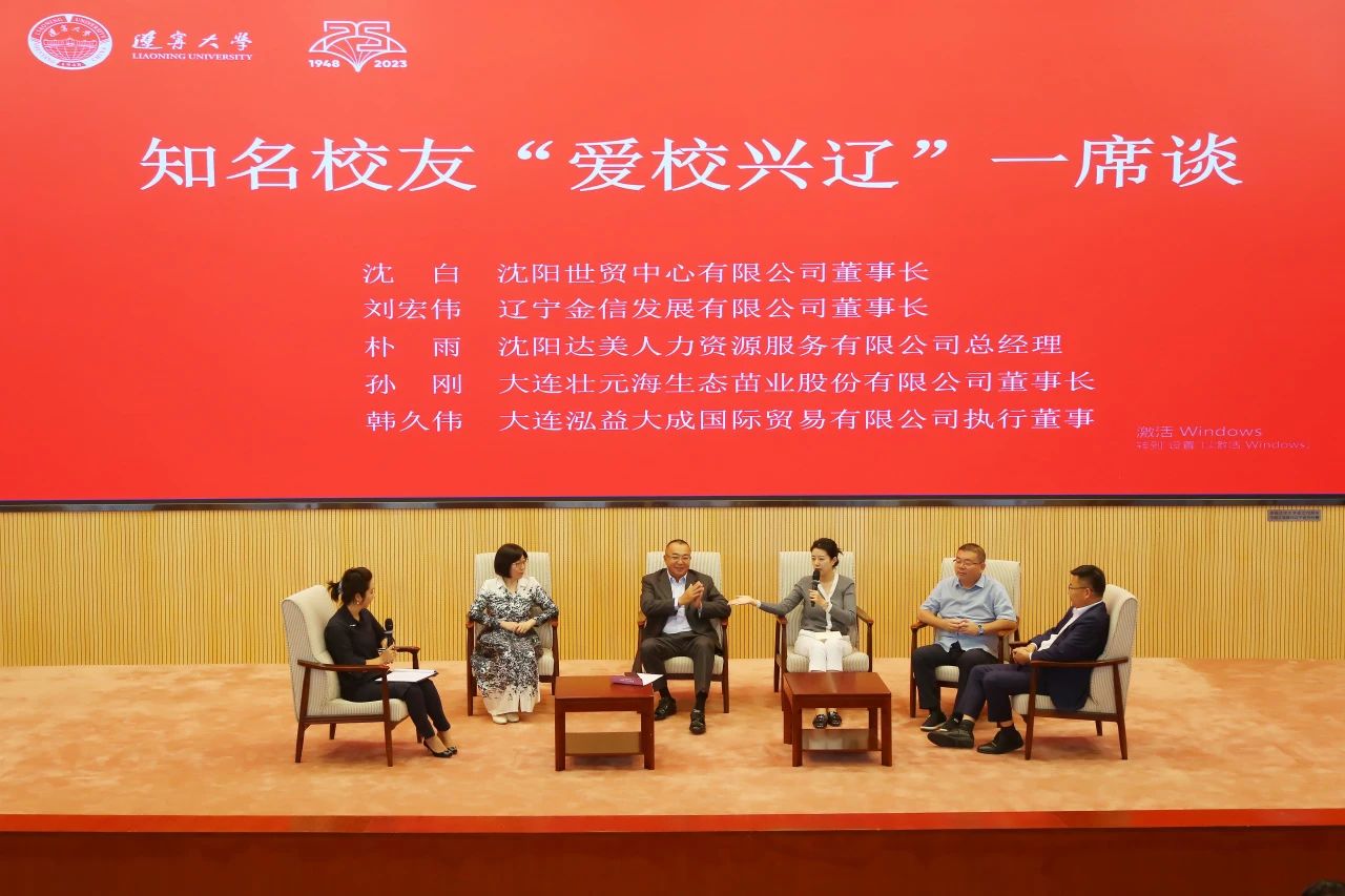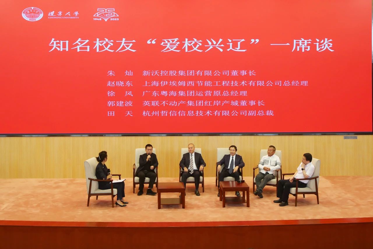 在“爱校兴辽”一席谈活动中,新沃控股集团有限公司董事长朱灿、上海伊埃姆西节能工程技术有限公司总经理赵晓东、广东粤海集团运营原总经理徐风、英联不动产集团红岸产城董事长郭建波、杭州哲信信息技术有限公司副总裁田天、沈阳世贸中心有限公司董事长沈白、辽宁金信发展有限公司董事长刘宏伟、沈阳达美人力资源服务有限公司总经理朴雨、大连壮元海生态苗业股份有限公司董事长孙刚、大连泓益大成国际贸易有限公司执行董事韩久伟等校友围绕“助力辽宁大学高质量发展”这一主题进行了深入互动交流。