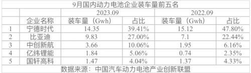 电池联盟数据显示,宁德时代9月装车量为14.35Gwh,较去年同期15.12Gwh下滑5%,是前五大电池厂商中唯一倒退的企业,而比亚迪、中创新航、亿纬锂能、国轩高科都有不同程度的增长。