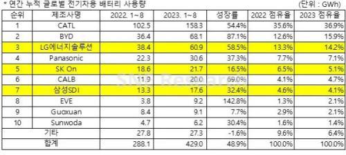 与此同时,宁德时代动力电池的装车市占率也下滑至39.41%,较去年同期下滑超8个百分点,也是其今年以来首次跌破40%大关。