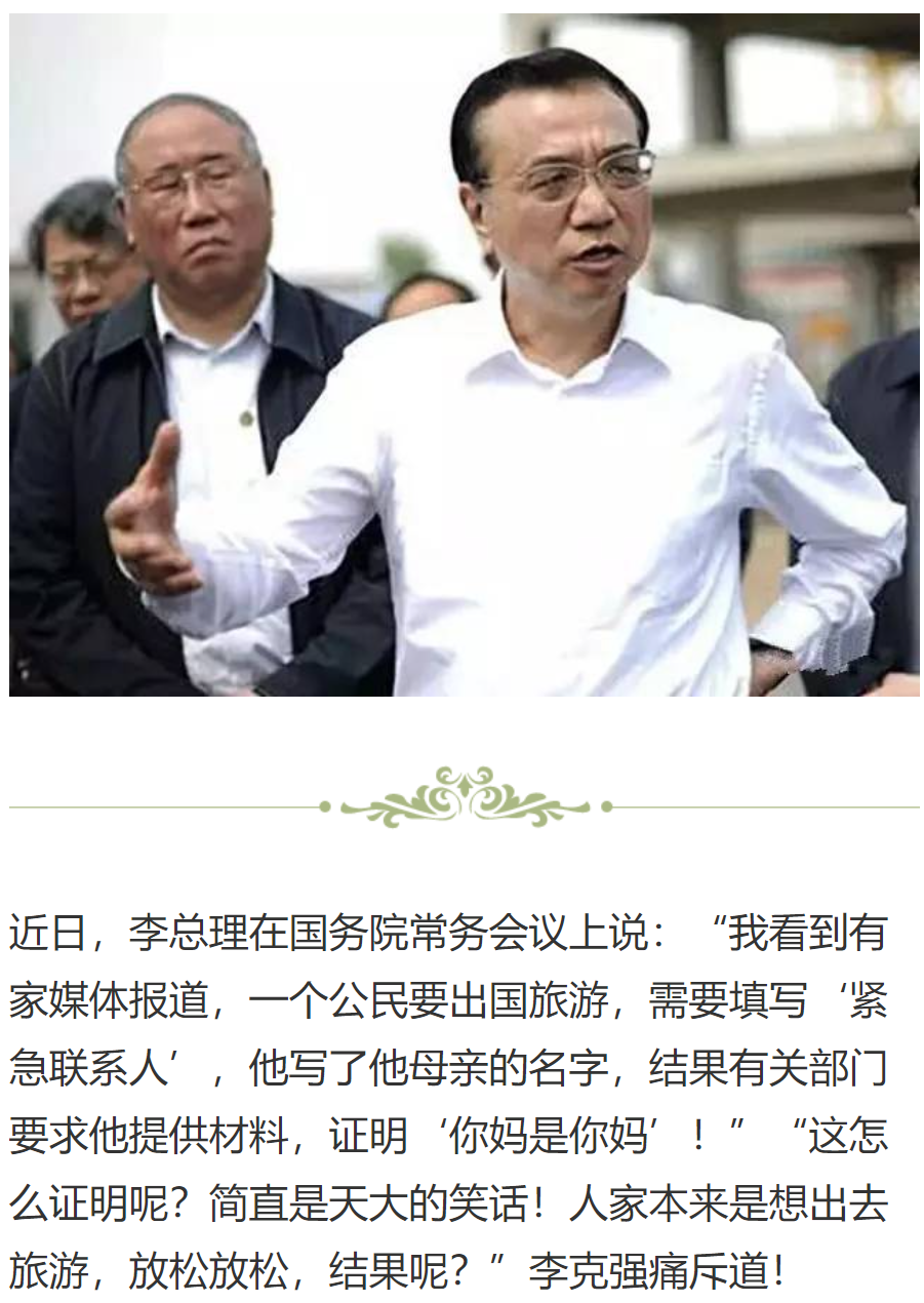 对于法律和权力的关系,他说“法无授权不可为”;对于法律和老百姓的关系,他说“法无禁止皆可为”。他为了提高行政效率,在全国推行“简政放权、放管结合、优化服务”的“放管服”改革,明确表示,全部取消非行政许可审批,老百姓办事最多跑一次,不再需要证明“我妈是我妈”,减轻了老百姓的负担。