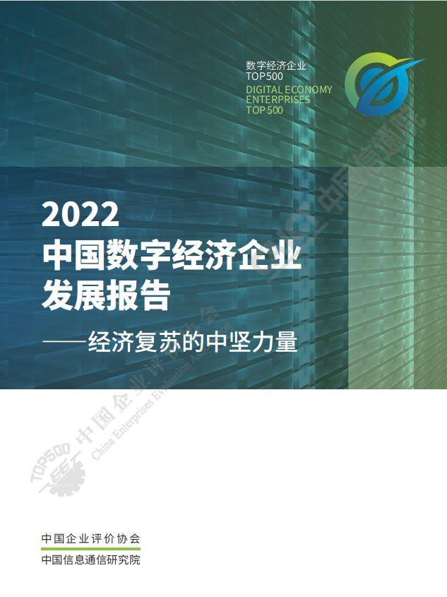 导读:近日,中国企业评价协会和中国信息通信研究院正式发布《2022中国数字经济企业发展报告——经济复苏的中坚力量》(以下简称《报告》)。
