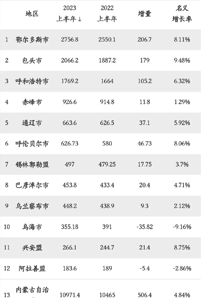 根据最新公布的数据,内蒙古各市之间的GDP排名趋于稳定,其中赤峰市排名第四,上半年的GDP总量尚未突破千亿。而包头市的经济发展则非常亮眼,其GDP已经突破了2000亿元,远超呼和浩特市。此外,鄂尔多斯市依旧是内蒙古经济发展的领头羊,其GDP增量达到了200多亿元。