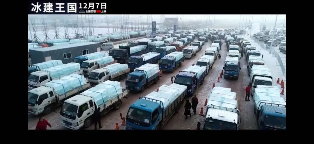 它完全源于人工制造,每年12月当松花江的冰结到32厘米厚,便可以进行“采冰”。师傅们需要先用机器设备在江面上画出一道道线,将冰面切割成一个个“3米x2米”的小块,再进行人力开凿,每人每天要开凿出500平方米的冰块,一干就是12个小时。