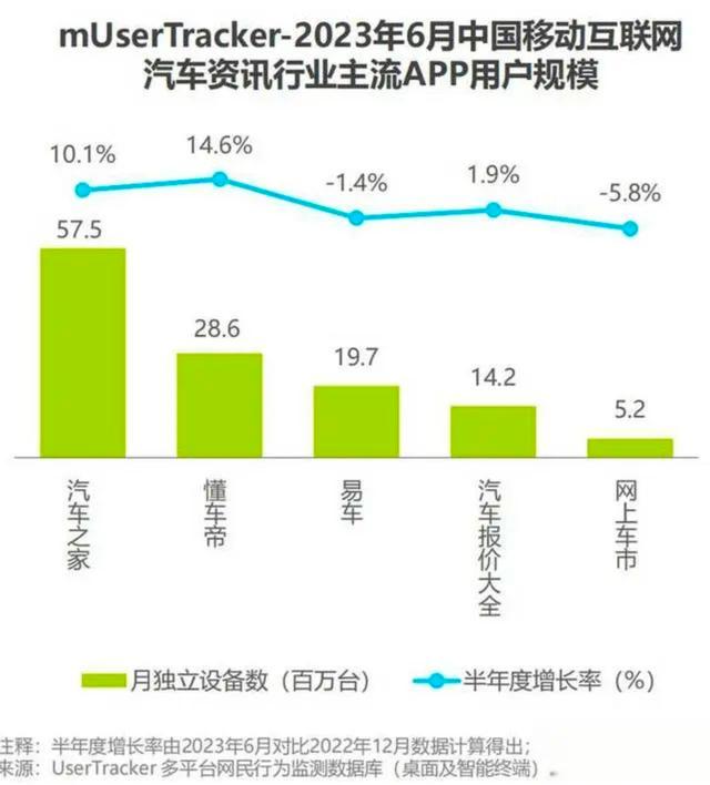 艾瑞咨询的数据显示,截止到2023年上半年,懂车帝目前的用户规模在2860万,对比2022年12月,App流量增长了14.6%,在三个平台中,用户增长最为显著。
