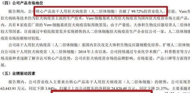 而这个“杀手锏”,也铸就了康华生物多年来在国内狂犬病疫苗领域的领军地位。据康华生物2023年半年度报告显示,2023年上半年,公司核心产品冻干人用狂犬病疫苗(人二倍体细胞)贡献了99.72%的营业收入。而从康华生物此前的年报来看,也均是如此。