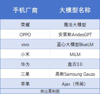 其他厂商虽没有如此直白,但在行动上却丝毫不敢怠慢。环顾整个市场,除了苹果之外,主流厂商的大模型产品均已亮相,并陆续引入手机之中。各家炫酷的大模型命名,各项领先业界的技术参数,已然将混战大模型的氛围渲染到位。