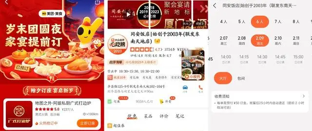 不少餐饮商户通过美团、大众点评等平台推出了低折年夜饭、团圆餐等到店套餐,提前锁定市民游客的堂食需求。美团相关负责人表示,平台已设置“岁末团圆夜家宴提前订”线上专区,即日起到春节期间全程推广提供此类服务的门店,帮助门店提升订单,增加确定性收益。
