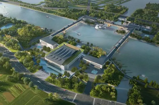 太浦河上,横跨沪苏浙两省一市的全国第一个跨三域标志性建设项目——方厅水院正在长三角的“原点处”如火如荼施工建设;