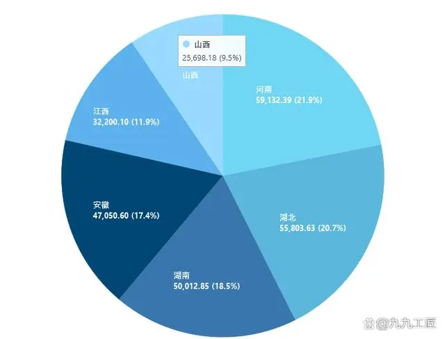 1.河南以59132.39亿位列榜首,全国排名第6。虽然在2023年被四川反超,丢失了全国第5的位置,但在中部省份中还是无可撼动的第一,占中部省份经济总量的21.9%。