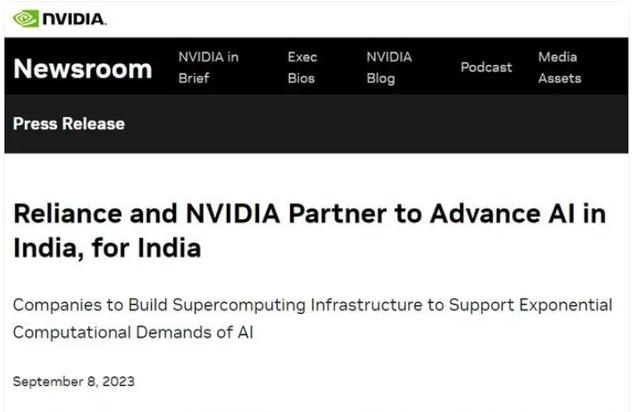 英伟达去年9月曾在官网上发布公告称,将与安巴尼的信实工业集团建立AI合作伙伴关系,双方合作开发大型语言模型,该模型将基于该国的多种语言进行训练,并且为生成式AI的应用量身定制,让AI技术更好地为14亿印度人服务。