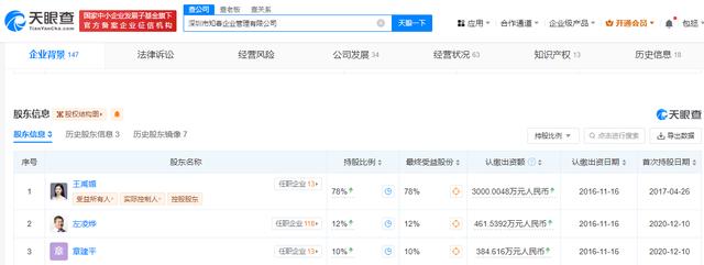 天眼查显示,杭州知春投资由深圳知春企业管理有限公司全资所有。在深圳知春企业管理有限公司的股东结构中,牛散章建平以384.6万元的认缴出资额占据10%的持股比例。
