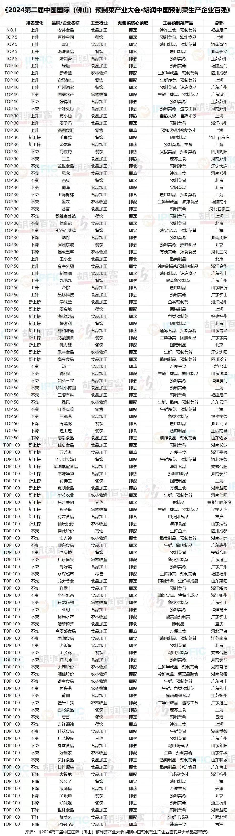 3月15日,“2024胡润中国预制菜生产企业百强暨大单品冠军榜”(下称“百强榜”)发布。