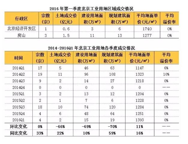 一季度北京成交4宗工业用地 竞争较小且低价成交