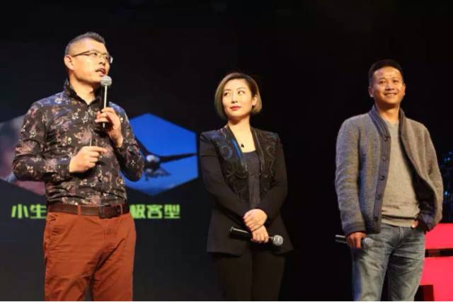 杨守彬(左)、微语言创始人朱春娜、订房宝始创人孙建荣(右)在《奋斗大讲堂》录制现场