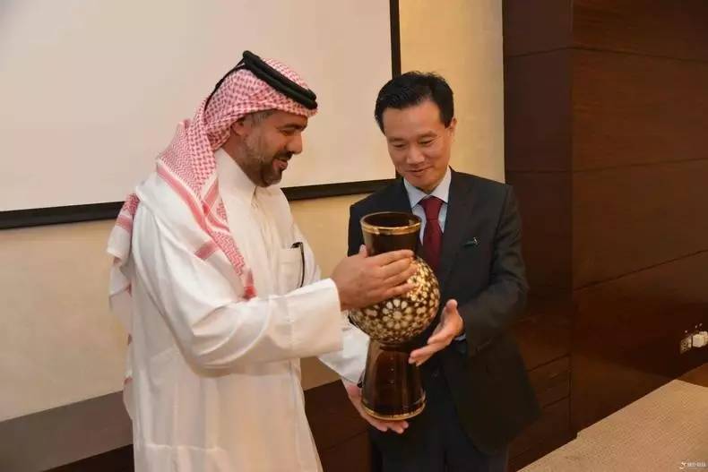 叶简明和卡塔尔GSSG控股公司主席Ghanim Bin Saad Al Saad交换礼物