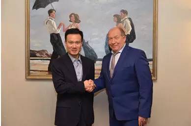 叶简明与荷兰皇家壳牌董事会执行董事、首席财务官西蒙·亨利合影