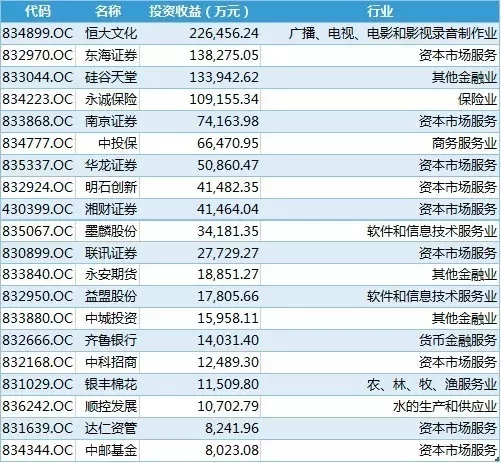 营收最多的公司所属行业五花八门,也对应了新三板目前百花齐放的状态。