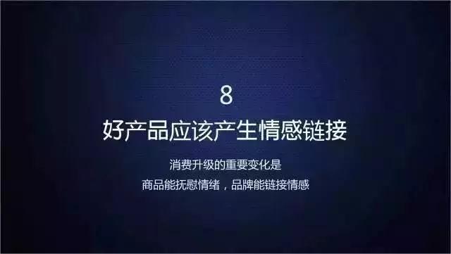 消费升级非常重要的一个方面是品质比原来更高了,另一方面最明显的特征是消费者开始从原来的物质彰显,变成情感彰显,原本商品的售价把消费者分成三六九等,今天发现很多消费者对品牌给予的精神分类非常地看重。