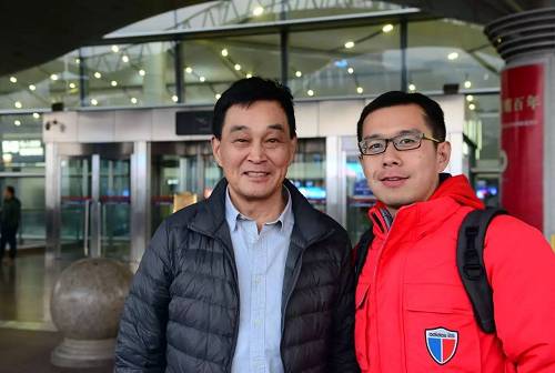 刘永行(中间戴帽者)把每天目标1万2千步的健步走也分解成“小数据”:12月14日,因为当天会议多,走路机会少,早上7点他就开始步行从宾馆去基地。