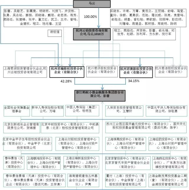 在此,我们可以围观一下“马教主”掌控浙江蚂蚁小微金融服务集团股份有限公司(蚂蚁金服,拥有支付宝)炉火纯青的高超手法。