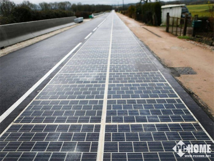 法国的这条光伏路面覆盖面积2800 平方米,设在当地双向两车道公路的一条车道上。