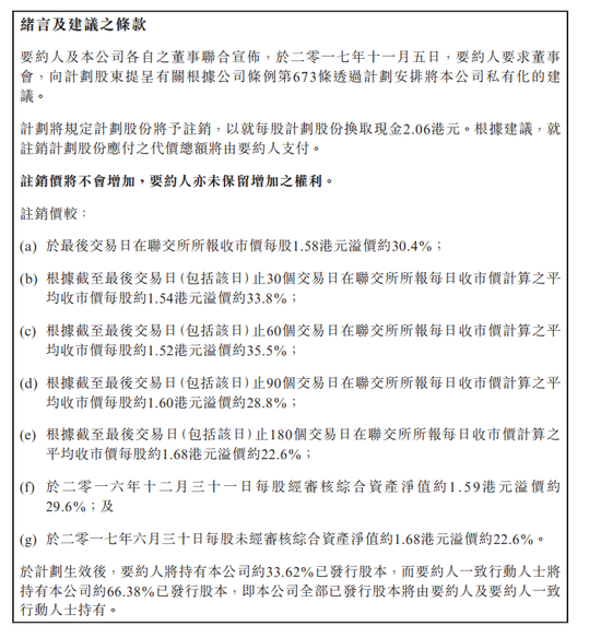 威灵控股与美的联合公告称,美的提出以2.06港元每股价格现金收购威灵控股31.37%股份,较上一交易日溢价30.4%;美的及关联方此前已持有威灵控股约68.63%的股份。