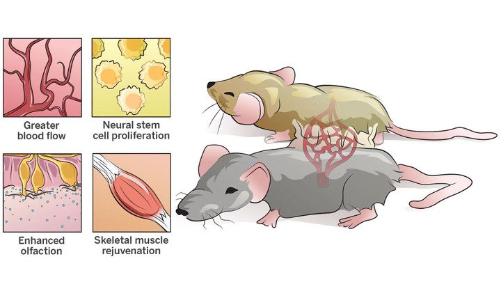 2014年,哈佛的研究团队也开始进行类似实验,并发现,通过将较年轻老鼠的血浆注入到较年长的老鼠身上时,年长老鼠的记忆能力和学习能力都有所提高。
