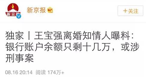 文章中写道:据接触到案件的知情人士透露,王宝强前往自己开设银行账户的六家银行查询自己的财产,所有账户的账面余额加在一起只剩下十几万,其他的财产部分被转移。该知情人士透露,王宝强的离婚案件内幕非常复杂,其中会涉及刑事问题。包括有初步的证据可以证明,有人在案件中侵占财产。