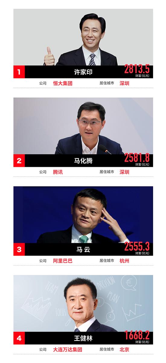 福布斯发布2017中国富豪榜:许家印马化腾马云居前三