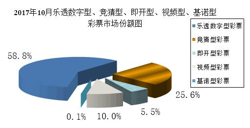 10月份,乐透数字型彩票销售221.31亿元,同比增加16.96亿元,增长8.3%;竞猜型彩票销售96.57亿元,同比增加22.73亿元,增长30.8%;即开型彩票销售20.73亿元,同比减少1.43亿元,下降6.5%;视频型彩票销售37.78亿元,同比增加0.04亿元,增长0.1%;基诺型彩票销售0.14亿元,同比减少0.04亿元,下降22.1%。10月份,乐透数字型、竞猜型、即开型、视频型、基诺型彩票销售量分别占彩票销售总量的58.8%、25.6%、5.5%、10.0%、0.1%。