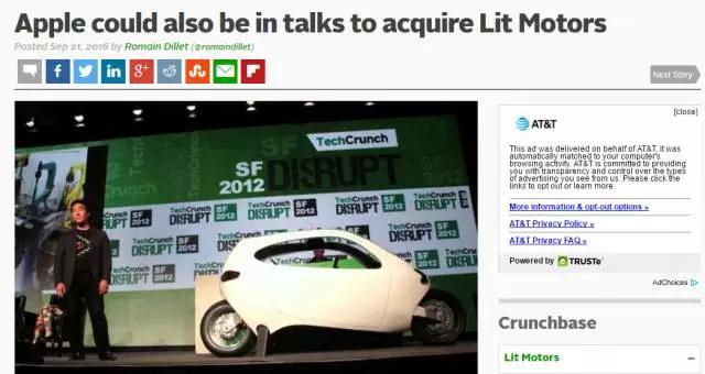外媒报道:苹果接触Lit Motors,洽谈并购合作。