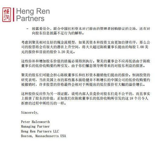 公开信说,陈欧以每股7美元的“私有化”交易提议大大降低了公司的价值,其随后的一系列措施已经使中国线上化妆品零售业领军者股票下跌了45%,而目前线上购物却在中国蓬勃发展。