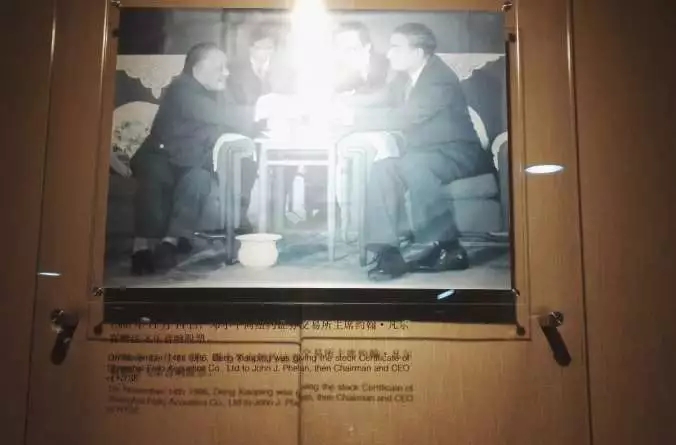 邓小平总书记赠送纽交所董事长飞乐音响发行的股票合影