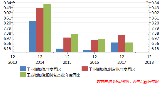 2017年全年,规模以上工业增加值同比增长6.6%,增速较上年加快0.6个百分点。更为重要的是,工业部门增加值增长的自主性在提升,增长的韧性也在改善,主要表现在以下两方面: