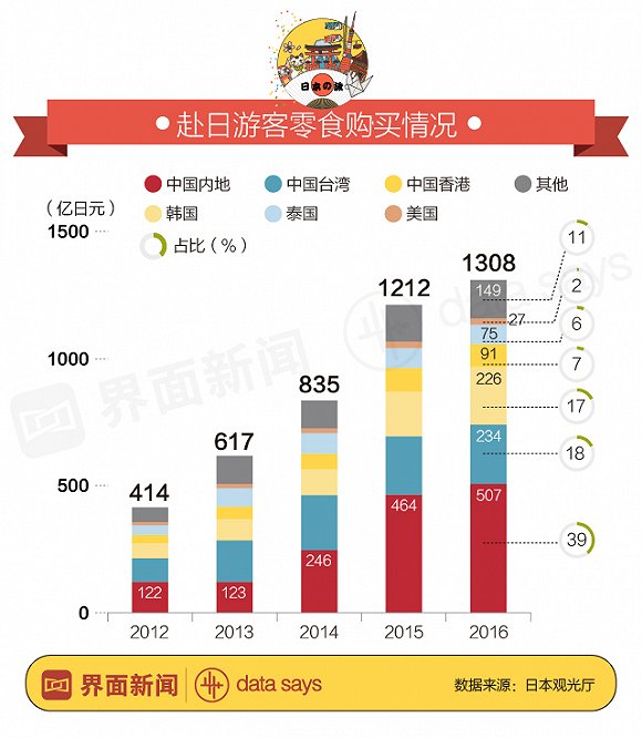 中国内地游客去日本人均消费1.4万 零食开支全球第一