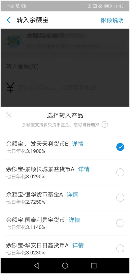 如果算上天弘余额宝货币以及新接入的这两只货基,余额宝平台目前已经有11只货基,其余8只分别为银华货币A、中欧滚钱宝货币A、博时现金收益货币A、华安日日鑫货币A、国泰利是宝货币、景顺长城景益货币A、广发天天利货币E和诺安天天宝A。
